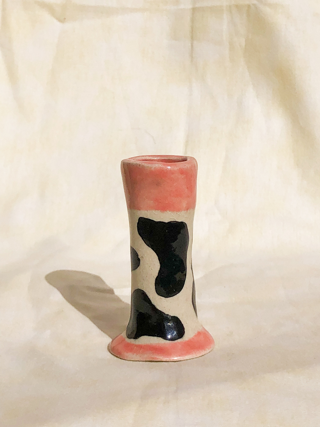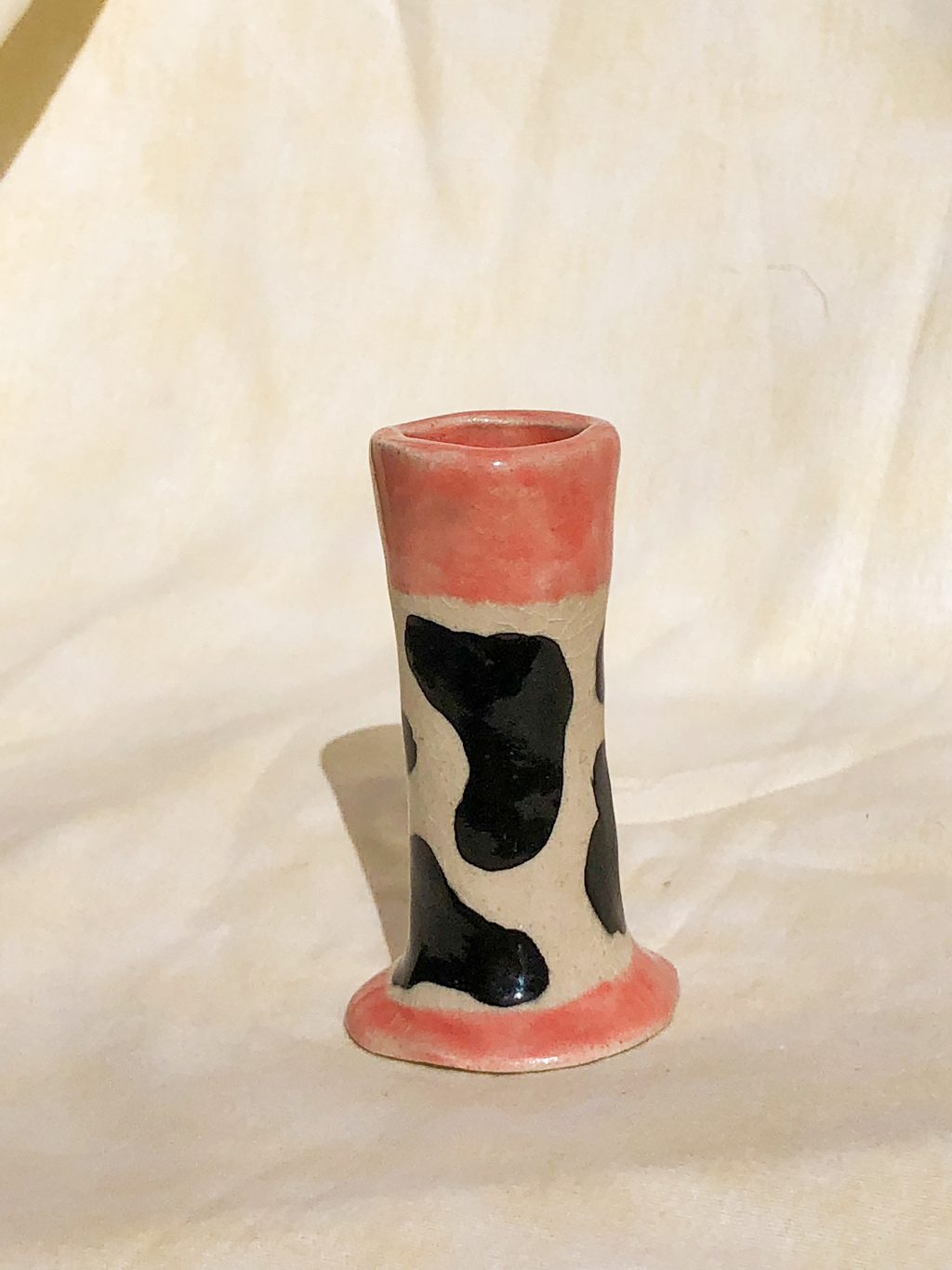 Este castiçal de cerâmica artesanal, com uma charmosa estampa de vaquinha, adiciona um toque rústico e descontraído a qualquer ambiente. Perfeito para quem busca uma decoração que foge do formalismo tradicional e abraça a tendência da simplicidade e do aconchego.